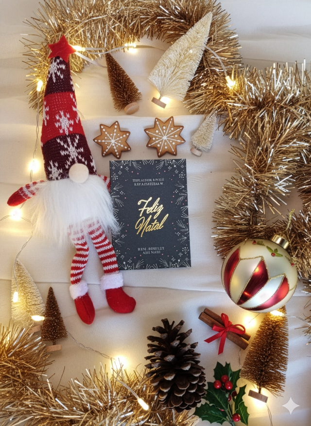Cartões Natalinos em formato livreto com aplicação de metalizado dourado